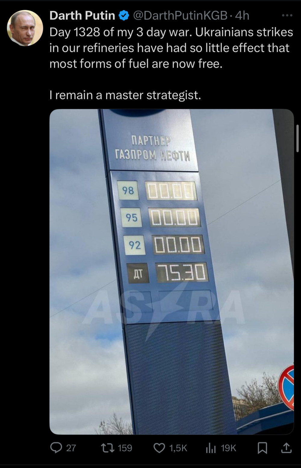 Obyvatelia Volgogradského regiónu sú hysterickí: po útok na ropnú rafinériu vo Volgograde, vypukol požiar, miestni sa sťažujú, že benzín bol už teraz nedostatkový, a pohľad na horiace veže potvrdzuje, že drony boli v noci presné. V noci naviac ruZké letectvo vyhlásilo poplach pre útoky na letiskách vo Volgograde, Nižnom Novgorode a Nižnekamsku.